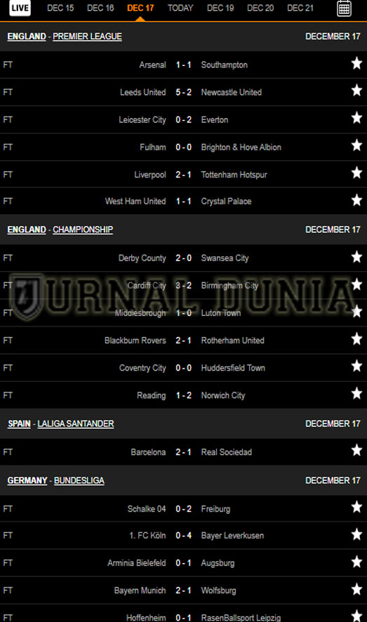 Hasil Pertandingan Sepakbola Tadi Malam Kamis Tgl 17 18 Desember