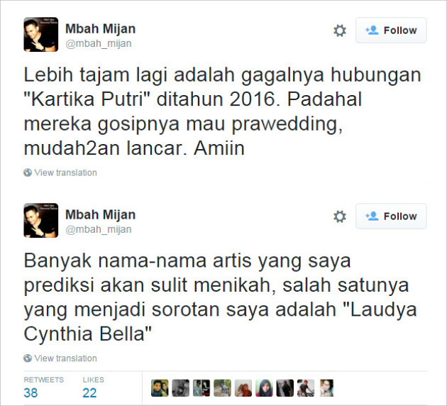 Mbah Mijan Ramal Asmara Kartika Putri dan Erick Iskandar Kandas di 2016